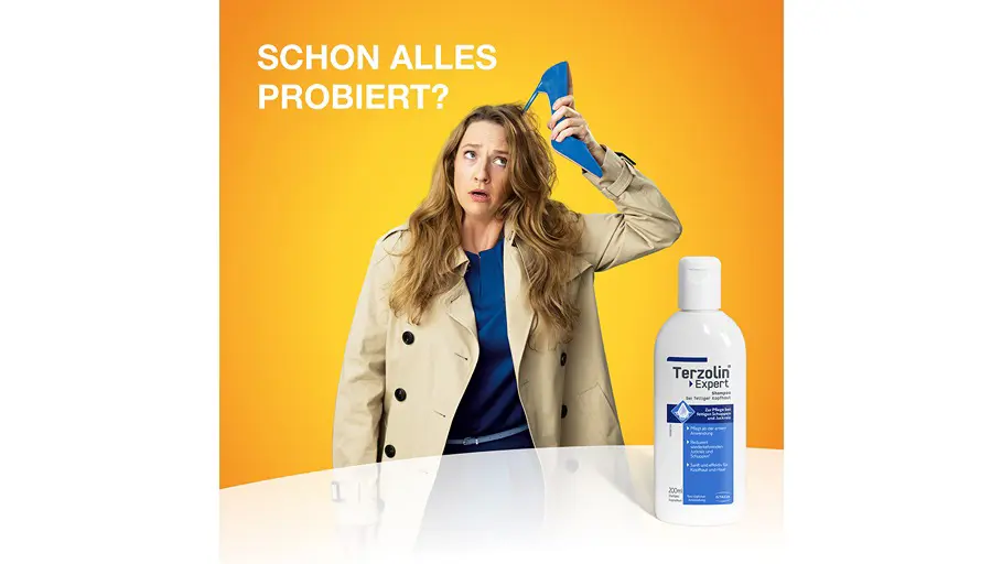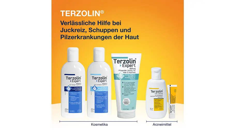 - Das Terzolin® Expert Shampoo reduziert Juckreiz & fettige Kopfhaut-Schuppen1