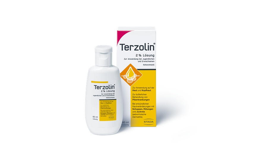 ®-Wirkstoff Ketoconazol besitzt ein breites Wirkspektrum gegen den Befall mit Haut-, Hefe- und sonstigen Pilzen. Um Kleienpilzflechte zu behandeln, genügt die Anwendung der Terzolin®-Lösung für ein bis fünf Tage bei täglicher Haarwäsche. Als Shampoo für ein seborrhoisches Ekzem beträgt die Anwendungsdauer zwei bis vier Wochen, sodass die Therapie bereits nach einem Monat abgeschlossen ist.
